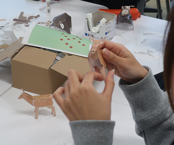 自然環境と生物をテーマに、子どもたちといっしょに学ぶためのペーパークラフトなどの工作教材のデザイン・制作、および体験プログラムの企画や開発などを通して「学びのデザイン」をコンセプトに、経営学部の学生とともにKidsDesignProjectとして活動をしています。
