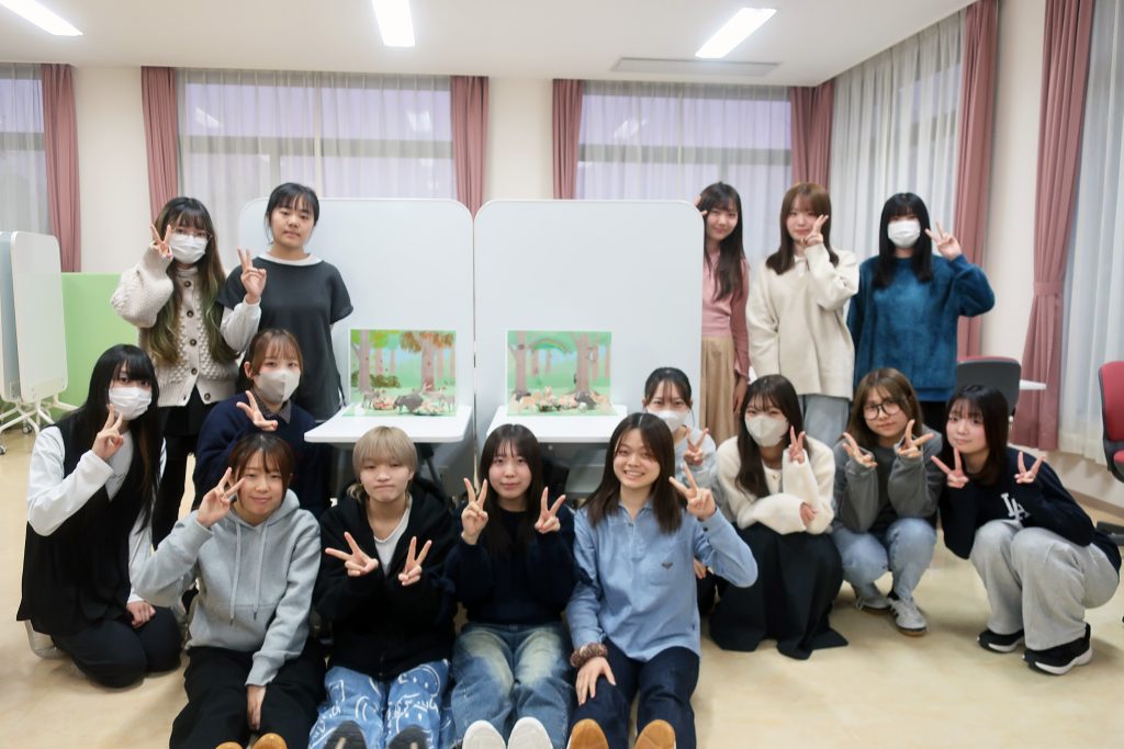 ツアーが終わった後、一緒に参加したグループの友だちとペーパークラフトでジオラマを作り「どさんこアニマル」について楽しみながら学びます。